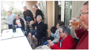 Ça s'arrose ! Alors Elie a sorti les magnums de vin de rhubarbe faits maison. Une tradition. D'habitude on boit cela en apéro à table au resto… mais cette année le patron du Vacanciel local est devenu une patronne… donc maintenant tu peux plus venir avec tes bêtises à Cambrai… ou alors tu casques (on a l'habitude, mais 14€ par bouteille… droit de bouchon ça s'appelle). Pas content le Elie. L'a failli leur boucher aut' chose le Elie. Du coup, exfiltration totale et rendez-vous au logis présidentiel n°113 pour une réunion improvisée de fin de chantier, avec tout l'UVO bien sur, et la brochette de moniteurs en caution morale en cas de débordement (ou de retard à la réunion quotidienne de 18h30). Moi qui pensais qu'ils ne buvaient que de l'eau ces mecs là… que nenni ! On nous aurait (encore) menti? Non cette fois y'a avait bien 12 degrés… mais dans la bouteille !!