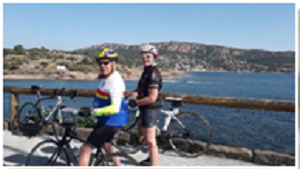 A part cet incident de dernière minute, encore une bien belle semaine de vélo, sous un soleil printanier pendant… allez… 5,5 jours (il boudait un peu mardi). Au total, quelque 560 km et près de 7000m de D+, voilà qui mettra les jambes face à leurs responsabilités pour la suite de la saison. Daniel aura, une fois de plus, tenu la distance dans le G1. Sacrebleu, à 73 balais, avec des furieux qui pourraient être ses petits-fils, il a parfois tiré la langue sur le plat mais leur a montré que le papy en avait encore sous la pédale en haut des cols. Bravo président !! Jean-Pierre l'aura suivi toute la semaine… sauf aujourd'hui où il souhaitait s'offrir une fin de stage plus relax en roulant avec Kap'tain, Alain et votre serviteur dans le G3. On sait ce qu'il en est advenu… Le P'tit Joël a tenu le rang sans problème, oscillant entre G7 et G6, pour des motivations pas toujours uniquement liées au rythme (je n'ai rien dit !!). Mine de rien, il a la patate notre cyclo miniature ! Quand à Gilles et Elie, ils auront le plus souvent fait leur sortie à la carte en compagnie de Sylvie, cyclote exfiltrée du groupe des dames, qui les aura épatés. Et n'allez pas croire qu'ils ont fait le bord de mer tous les jours… 1000m de D+ en 60 km, ça vous parle ? Bref, tout le monde a roulé à sa main et termine ce stage satisfait sans être défait. Reste à voir ce qu'en dira la balance en rentrant… car même si on a fait de l'exercice, on a quand même mangé un peu plus que d'habitude.