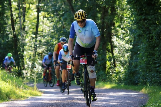 Vu la canicule annoncée, le départ de l'étape 2 est opportunément avancé à 7h30. Stéphane me confie qu'il se réservera le choix du parcours à la bifurcation. Allez… je vends la mèche : le grand périple de la veille n'ayant pas été de tout repos, et la température montant plus vite que moi, il choisira sagement de m'accompagner jusqu'au bout pour goûter à son tour à la découverte (111 km/1700 m). Au contraire de la veille, l'itinéraire nous réserve quelques pentes à deux chiffres. Malgré les apparences, je n'y fais pas le poids ; Stéphane m'attendra chaque fois en haut. Le reste de l'étape sera plus v(w)allonné que montagneux, ce qui convient mieux au liégeois que je suis. Tout comme la petite bière servie à l'arrivée avec une collation en guise de déjeuner, certes tardif, mais néanmoins bienvenu.