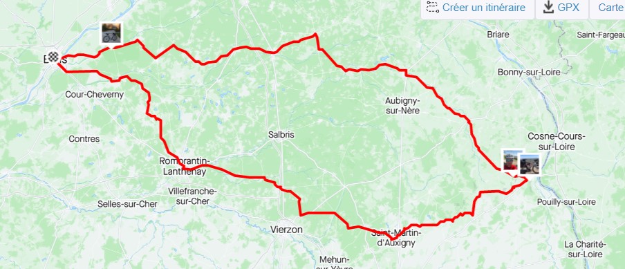 Initialement je devais m’attaquer au 300 km à Flins, le 23/04. Le mardi 12 avril, j’ai capté qu’un weekend de trois jours arrivait, et que, de surcroit, la météo s’annonçait superbe. Dans la foulée, je tombe sur une annonce du BRM300 de Blois. Il ne m’en fallait pas d’avantage, c’était décidé, j’allais faire une longue virée en Sologne et dans le Sancerrois. Je m’inscris, je me trouve un petit gîte sympa pour le vendredi soir, tout était réglé, il ne restait plus qu’à pédaler et à gérer l’épreuve.