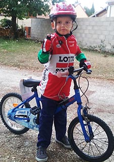 Antoine est très fort. Il a même fait quelques journées à l'école avant l'été. Il grandit au milieu des vélos de Papa. Le vélo est sa vraie passion. |