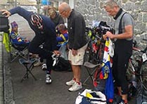 Départ 16 août à 20h00 : vélodrome de Saint-Quentin-en-Yvelines Préparatifs 29/07•22h•Guillaume : Dernière ligne droite. Il nous faut anticiper : nous préparons l’assistance, les arrêts au stand (camping car) ; les repas ; les prévisions d’horaires… La liste du matériel : vêtements de jour, de nuit, de froid, de chaud, de pluie. Nécessaire de réparation. Bobologie… à embarquer sur le vélo comme dans le camping car... Les menus, les listes de courses. Déterminer le « qui fait quoi... » Bref, du jus de cervelle à mettre en œuvre pour que tout se passe au mieux… (Guillaume Carnoli : Randonneur de l'UVO. Premier Paris-Brest-Paris 22h59•Lætitia : Pour qui c’est le plus crevant au final ? Le cycliste ou l’accompagnateur ? (Lætitia Falaise : amie, supportrice de Bazainville)