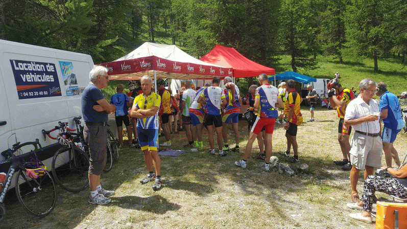 A Cervières, une récente route goudronnée que depuis 2 ans nous emmène vers notre traditionnel pique-nique « les Fonds de Cervières ». Alors qu’au Briefing, il nous avait dit, ça grimpe un peu sur 4km et après un faux plat… Alors le « un peu » c’est relatif car on s’est repris un bon 8% sur 4km et LES FAUX PLATS en montagne c’est en général du 4-5% ! Mais bon le décor étant superbe, des alpages, quelques maisons perdues et une rivière pour nous accompagner nous font oublier les difficultés. Le repas est encore pris dans un lieu superbe où l’on pouvait entendre les marmottes siffler.
