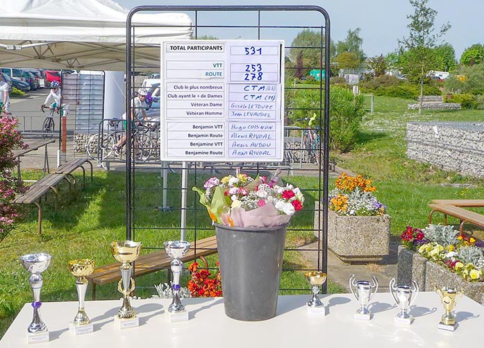 Au bout du compte, plus de 530 participants, répartis presque équitablement sur les parcours VTT et route, avec pour seul écho parvenus à nos oreilles, des remerciements et félicitations pour ce beau rallye printanier. On dit merci au soleil, et à vous tous… à l’année prochaine ! VINCENT |
