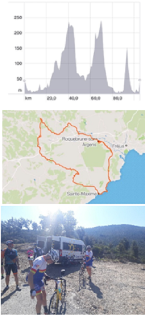 Nous l'avions quitté hier en petite forme. Ce matin, il avait la pêche (ou la banane ?). Elie, porté par sa volonté, nous sortira de ses (œufs) mollets un bon 60 km en compagnie de Gilles (remis de ses émotions) et de Sylvie. Dont la fameuse montée de Valdingarde !!