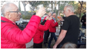 Et voilà, une dernière étape qui aura finalement été la plus longue de la semaine (120 km) mais pas la plus dure (1100m D+). Cette fois, c'est terminé. Et…. histoire belge de circonstance, nous étions dans les trois derniers kilomètres de la semaine, sur la petite route au pied du rocher de Roquebrune, on se disait "pas une crevaison, pas un ennui mécanique, pas une chute"… et patatra… voilà-ti pas que notre ami Jean-Pierre se fait serrer involontairement par un cyclo, dévie sa trajectoire, arrive sur des gravillons… et glisse de la roue avant dans le caniveau naturel qui, heureusement, amortira la chute côté gauche. Pas une éraflure, mais une épaule apparemment luxée. Plus de peur que de mal, on en saura plus ce soir à son retour des urgences.
