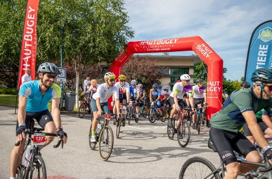 Quelque 150 participants, dont plus de la moitié d'étrangers, se retrouvent le 27 juin sur la ligne de départ à Arbent. Un speaker anglophone au micro très sonore nous met d'emblée dans une ambiance de kermesse à la shake's pire : ça secoue ! Stéphane a décidé de s'inscrire sur le parcours Performeur (pour les bons), quant à moi, étant donné mon aisance naturelle sur ce type de parcours, j'ai plus raisonnablement opté pour la formule prosaïquement appelée Découverte. Comme si on ne savait pas ce que c'est une côte !