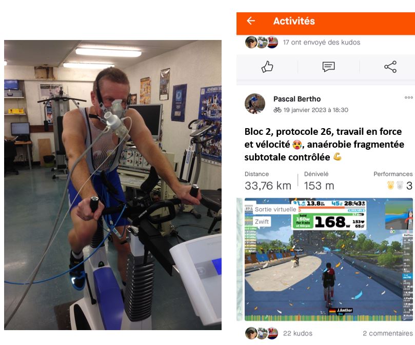Et tout est sur Strava… mais moi j'y comprends rien à tous ces trucs hyper-sophistiqués genre Zwift et tout ça. Tenez, là, j'ai pris un de ses entrainements au hasard : "Bloc 2, protocole 26, travail en force et vélocité, anaérobie fragmentée subtotale contrôlée" … ah ça rigole pas avec le Bertho. Y s'oblige même à pédaler avec des bonbonnes de CO2 pour être certain d'être en anaérobie… un pro j'vous dis. Et tu vois la différence quand il sort d'hibernation… vers le 14 juillet… y te claque un 100 bornes à du 29 de moyenne… Ah ça rigole pas avec le Bertho…