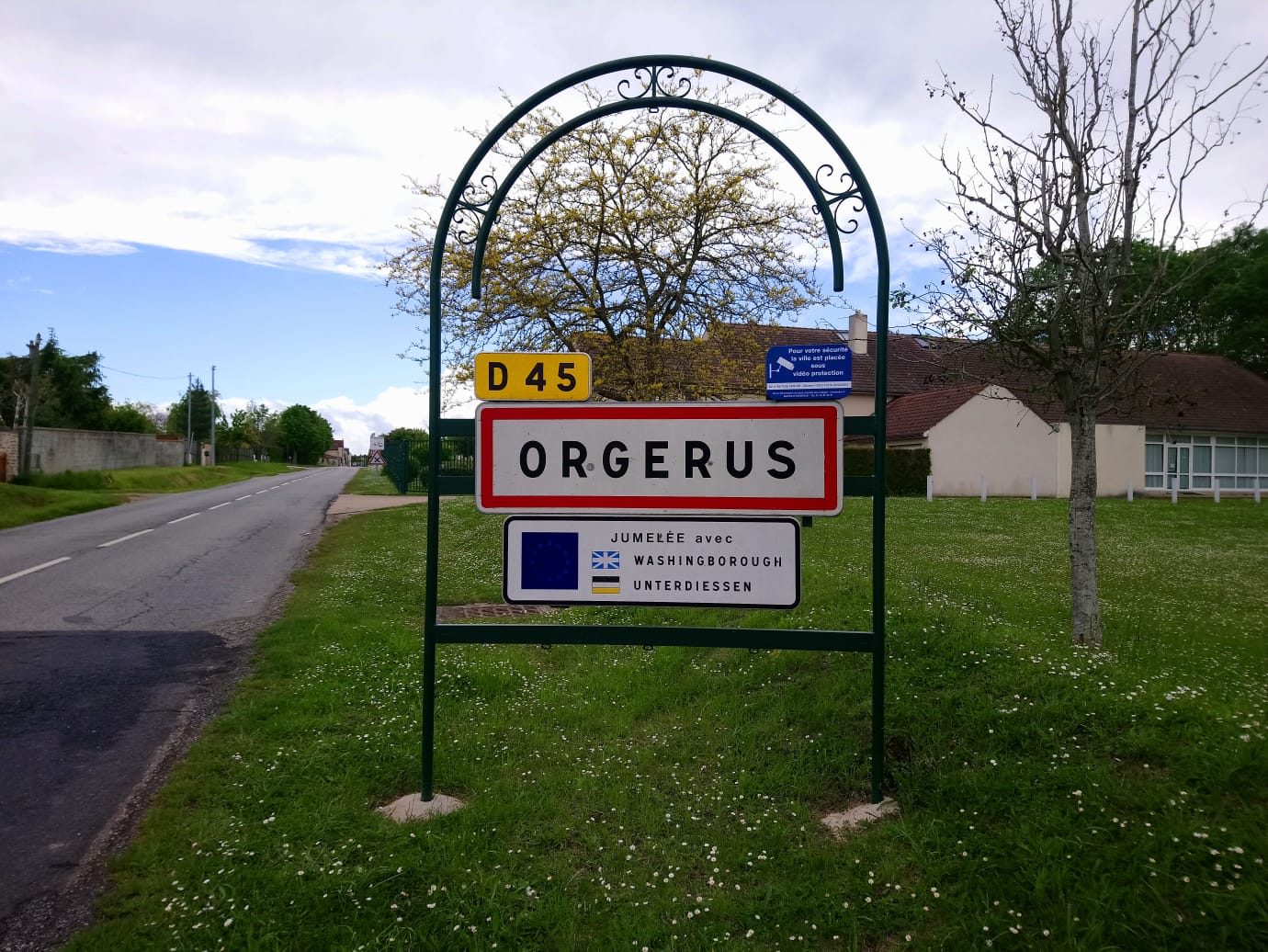 Sans attendre qu’il ne te soit tendu un guet-apens (car tes co-pédaleurs sont joueurs) voici les photos des pancartes d’entrée d’Orgerus. Tu vas pouvoir les étudier afin de ne pas être surpris. Ne triche pas, il n’est pas question que tu t’échappes en kart pour passer en tête ! C’est à vélo que ce jeu se pratique (voire se Patrick).