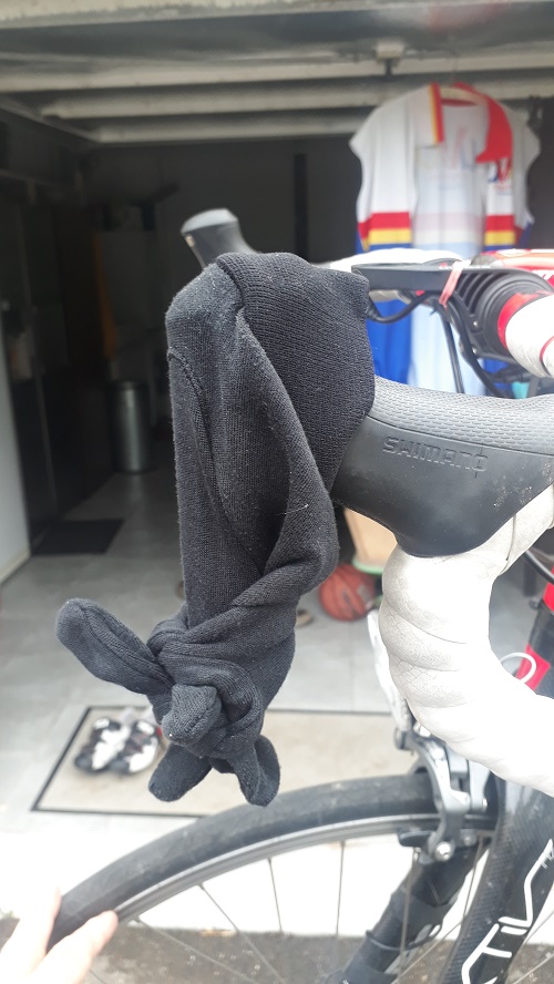 "Attention, ne passe pas le grand plateau, la chaine est forcément trop courte… tu ferais tout péter" me dit-il !! C'est vrai qu'après avoir démontré toutes mes capacités à faire le changement de vitesse interdit, autant être prévoyant… c'est le genre de réflex qu'on peut avoir sans y réfléchir une fois que la route s'aplanit (et avec un Di2 c'est vite fait). J'installe donc mon gant de nuit sur la poignée de frein avant, histoire de calmer toute ardeur d'entamer le "concerto pour la main gauche" (de gRavel, bien sur).