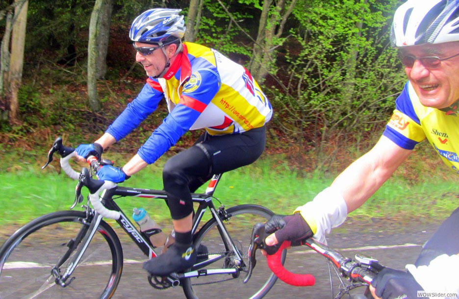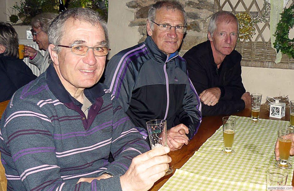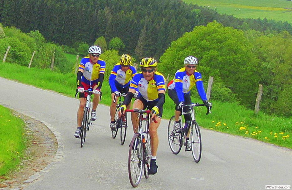 Ne pas confondre jouer du piano debout (pour faire le malin devant les filles) on en a même connus qui jouaient à l’envers allongés sur la queue (du piano) avec jouer du piano assis et faire chanter les copains. Vincent a joué assis et on a chanté Le plat pays comme l’a si bien dramatisé le grand Jacques qui, manifestement, n’usa pas ses boyaux sur les routes de Belgique… Une bonne partie d’entre nous n’a pas sursauté d’étonnement quand il s’est agi de calculer le dénivelé des étapes journalières. Il y a déjà huit ans qu’un corps expéditionnaire du club avait vaincu pour la première fois les sommets du cyclisme belge et écrit une glorieuse page de l’histoire de l’UVO. Cette fois encore, c’était à l’Ascension et coïncidence :