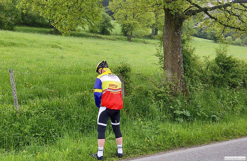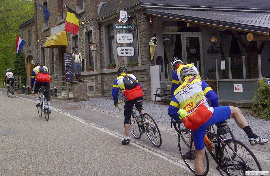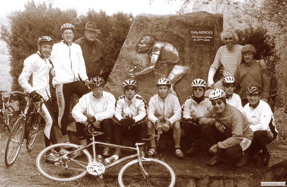 grêle et même de neige… mesuré à cette aune, on peut affirmer que nous avons bénéficié d’un très beau temps, clément et à peine frais. Merci donc à la Belgique. Merci à la Belgique qui nous a dévoilé de solides appas. Et quels appas pour faire tourner la tête des cyclistes ? Eh bien disons-le tout net: des côtes ! des côtes pour les nerveux du jarret, des côtes pour les mous du genou. Ça les obsède. Ils sont frappés ces pédaleurs invétérés. Les côtes : ils se tuent à les grimper, mais ils sont prêts à parcourir des kilomètres en voiture pour y rencontrer la petite mort, jouir en se disant : je l’ai fait…. La Belgique cache ça dans ses replis dantesques, en Ardenne, particulièrement. C’est dingue ! (voir par ailleurs). Enfin, la Belgique nous a livré le spectacle qu’on attendait. Une nature exubérante et si verte qu’on se dit