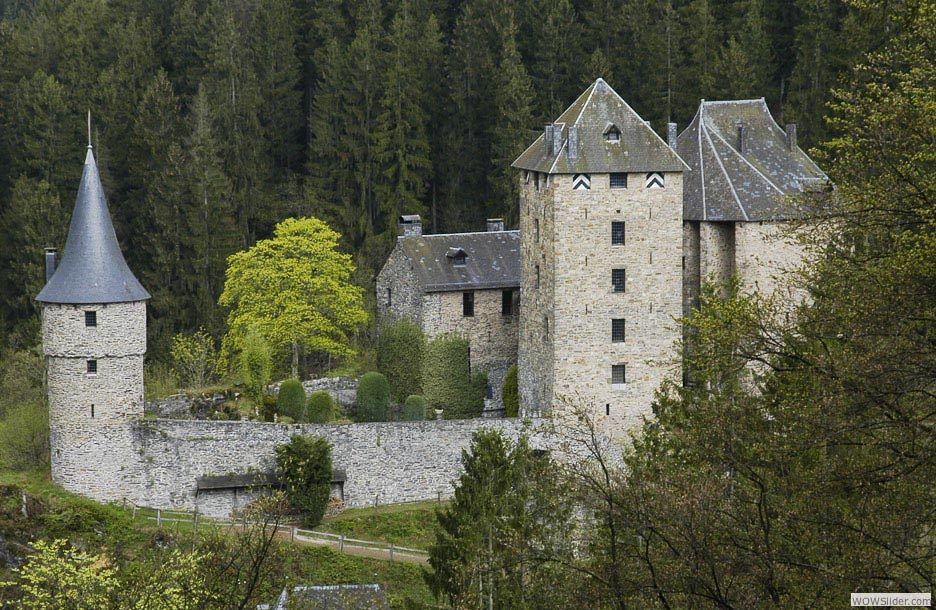 Le château de Reinhardstein se fait tout petit dans la majestueuse forêt des Hautes Fagnes (tout proche de Robertville)...