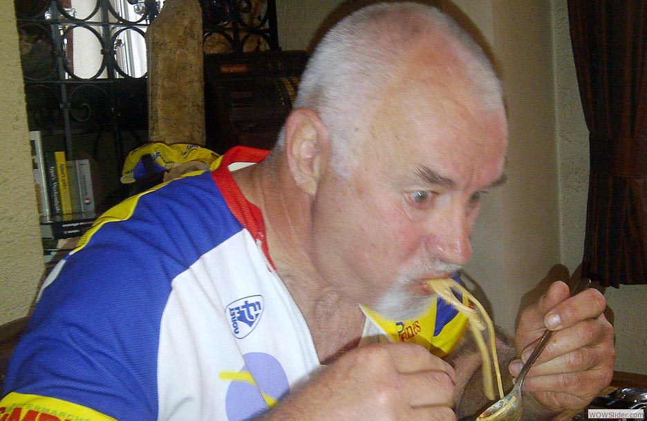 Elie... il aspire ses spaghettis bolognèse sur un bon braquet !