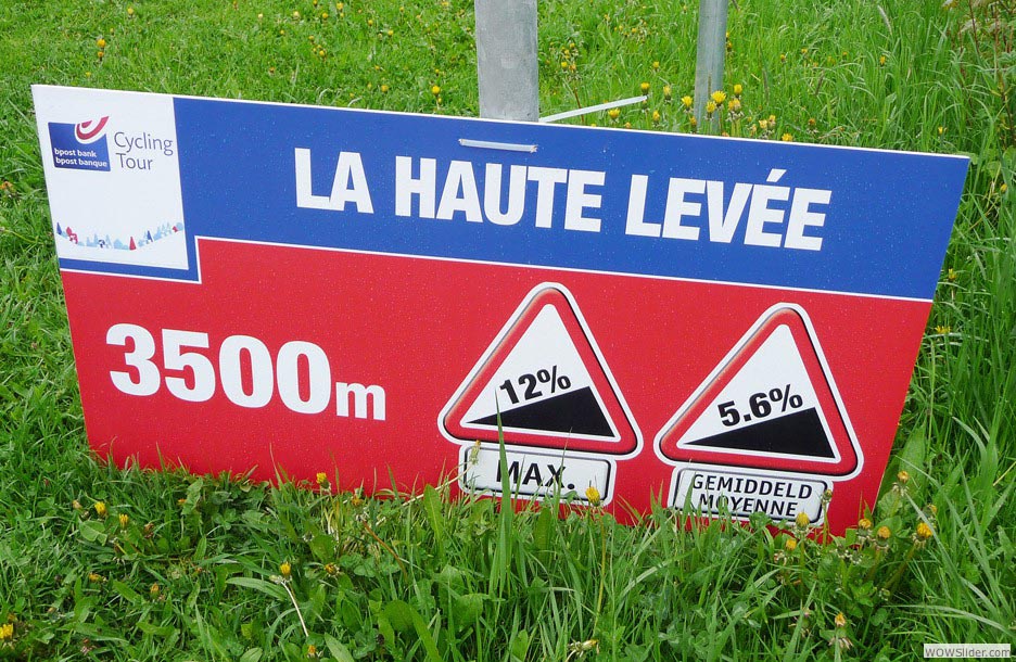 des qualités d’endurance et ne se passe grand plateau que pour les très costauds Le col de la Haute-Levée est une côte particulière. On peut la décomposer en deux parties : le premier kilomètre et demi, très raide, un peu plus de 12% ; et les 2 derniers, doux faux-plat à 3%. Large route bien roulante.
