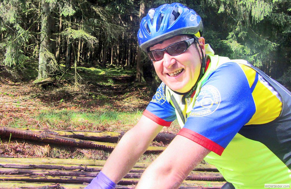 Et hop !... enfin « hop ! », on se comprend : un hop difficile comme après une halte copieuse au « wirtshaus »... remonter sur son « petit » cheval est une épreuve pour les courbatures et raideurs du cycliste...