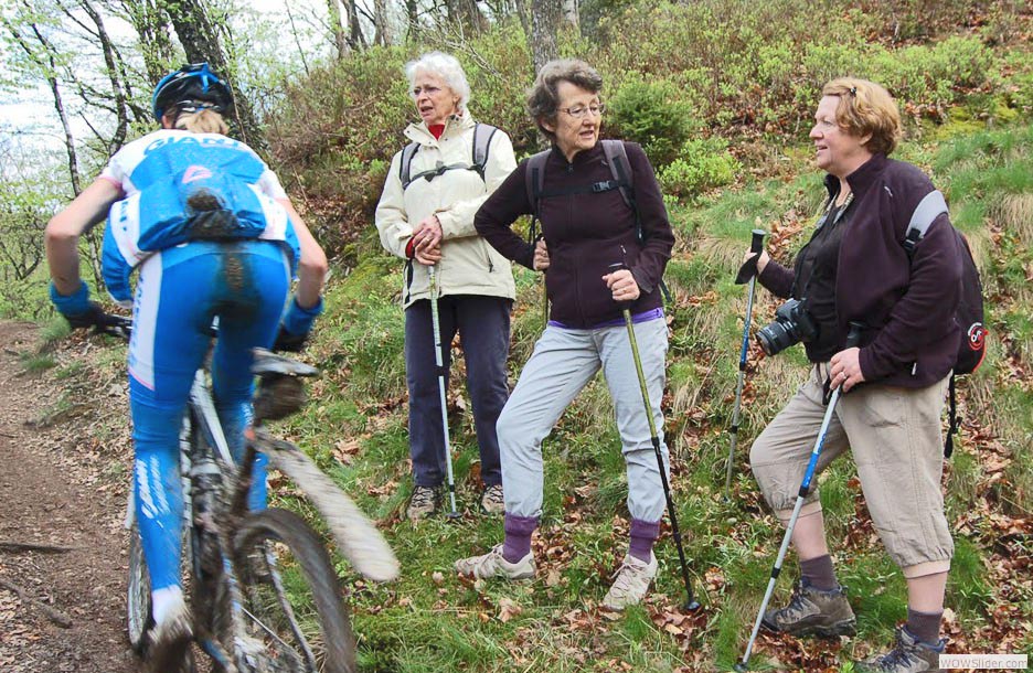Et pendant que les machos de l’UVO roulent, les femmes partent à l’aventure. « J’échangerais bien un vieux et laid routier de 70 ans contre deux beaux petits vététistes de 35 »... on peut toujours rêver.