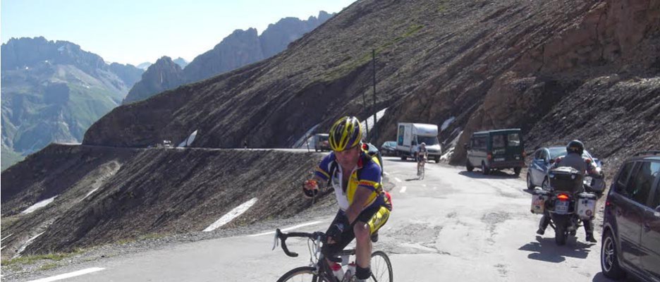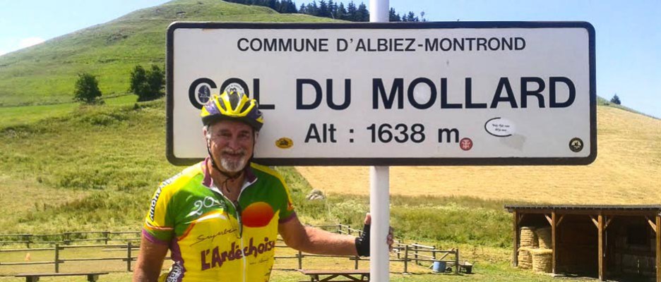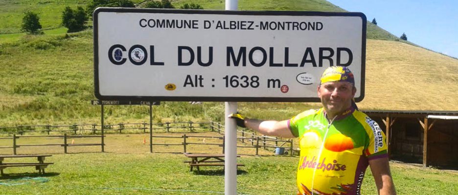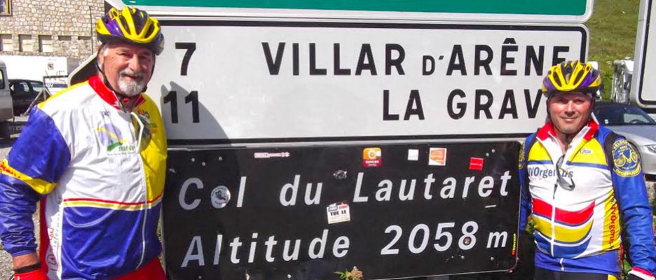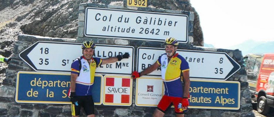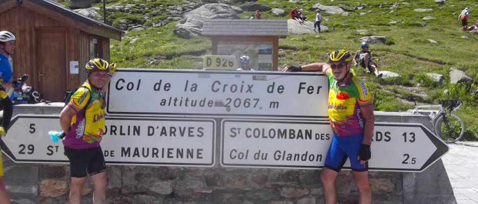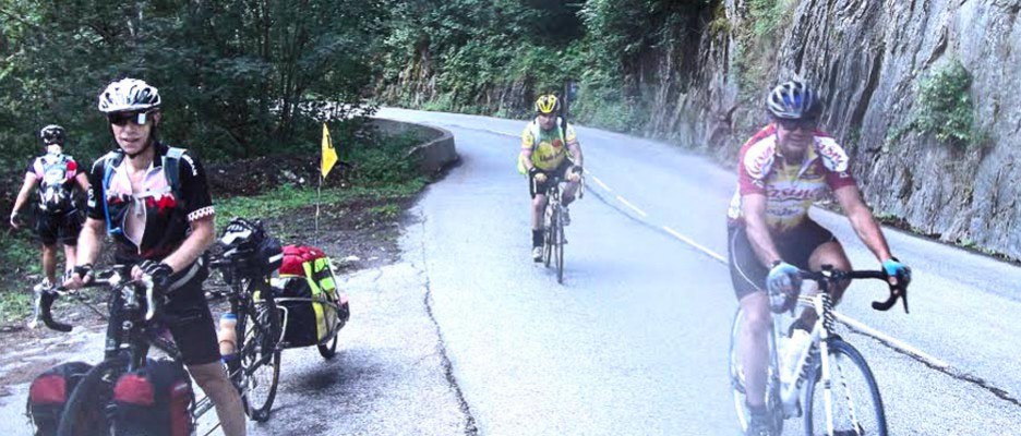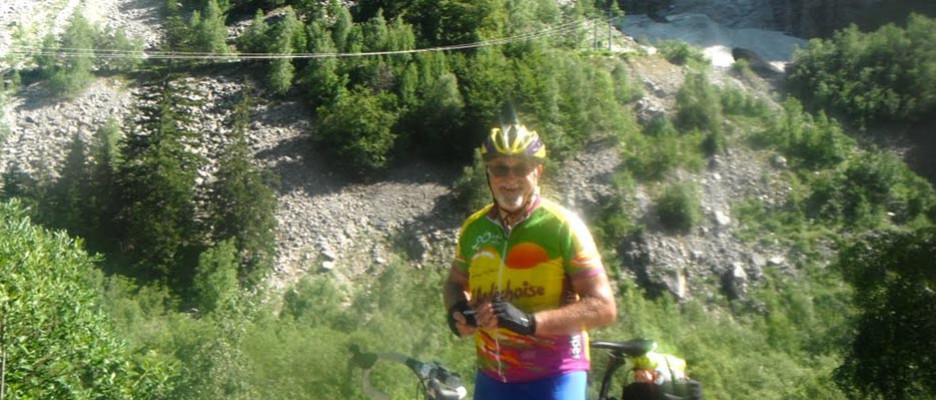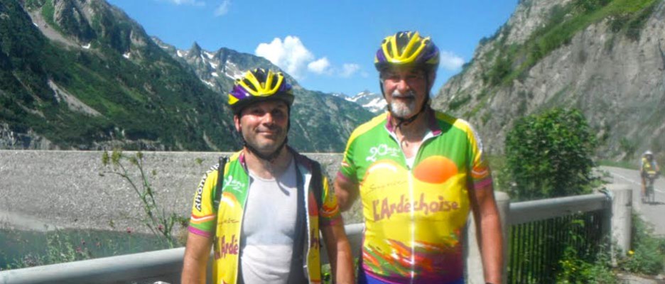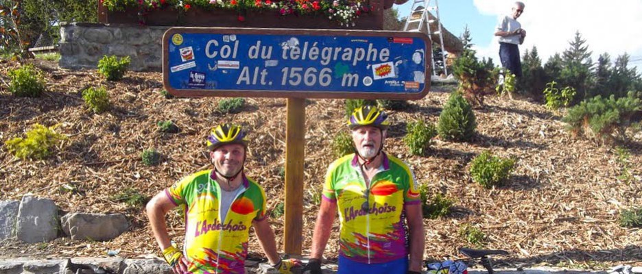 Une pub’ sur un magazine cyclo : le défi est lancé. Concertation rapide avec Pat et la folle aventure se met en branle. Moi, grand montagnard ?! Ça se saurait ! Qu’importe, l’envie de se tester dans les grands cols est trop forte. C'est parti. Vizille-Vizille les 20 et 21 juin 2013... A 6 h 45, voici les amuse-gueules, 30 km de faux plat montant pour nous échauffer en vue de la première difficulté. Le col de la Croix de Fer nous attend au barrage du Verneys. Ça y est, nous y sommes la pancarte nous prévient : « Croix de Fer » 30 Km. Ça impressionne, mais on ne reculera pas ! Quatre heures plus tard, après être passés près du sommet du Glandon, nous faisons « la » photo au col de la Croix de Fer : 2067 m. Première récompense. Le temps est magnifique, la vue splendide. Un ravito sympa et c’est reparti : objectif Saint-Jean d’Arves où nous attend un repas chaud. Mais il faut penser à ré-enfourcher nos montures. Point de mire : le col du Mollard 1 638 m. De ce côté, 6 km, c’est pas très long mais très difficile après un repas. Pat se prend un bon coup de mou. Nouvelles photos à la pancarte, ravito, plaisirs des yeux, bonheur ! Il nous reste un col pour aujourd’hui, mais profitons d’abord de cette descente très technique du Mollard en forêt (20km) pour nous diriger vers Saint-Michel de Maurienne. Dernier ravito du jour au pied du col du Télégraphe : 12 km de grimpette sommet à 1 566m. Nouvelles photos. Ouf ! Heureux d’être là : 6 km de descente. Notre hébergement à Valloire s’annonce. Valloire : patrie de Jean-Baptiste Grange, champion du monde de slalom. Son portrait est affiché partout. Direction le syndicat d’initiative pour trouver le lieu d’hébergement. « Pas de souci, nous dit la charmante dame de l’accueil avec un grand sourire malicieux, 3 km en direction du Galibier, vous trouverez votre hébergement ». Le pourquoi du sourire : 3 km à 8 % ! Au bout d’une journée pareille, ça fait très très mal (hypo pour Elie qui chute sans gravité à 500 mètres du but). Douze heures de vélo. Les difficultés qu’on dit « naturelles » et la forte canicule nous ont « un peu » entamés. Nous voici quand même arrivés à la maison des scouts. Une douche, un excellent repas et au lit ! sans discuter. |