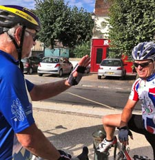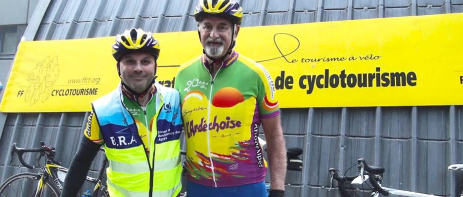 Arrivée au Cerf-belvédère Armentier. Ravito sympa, petite trempette de Pat dans la fontaine du village et c’est reparti pour la récompense : cette route étroite en corniche qui surplombe la vallée de l’Oisans, inoubliable ! Après la Garde nous débouchons au pied de l’Alpe d’Huez (les 4 virages restant sont dans le bon sens, pour nous). Dernier ravito à Bourg d’Oisans au son de l’accordéon. Retour au parc du château à Vizille après 32 km de faux plat descendant, en collaborant à un groupe de 6 cyclos super sympas : plus de 40 kmh de moyenne. Casse croûte, bière, douche, achats des photos d’ascensions, du maillot super BAC (oh, celui-là, c’est du précieux)… dernières discussions animées entre passionnés (1601 participants). La fin d'un rêve superbe. Deux jours, 232 km et 5123 m de dénivelé : une énorme rando. Le rêve de deux potes. Remercions l'organisation sans faille du Club des Cyclotouristes Grenoblois et les nombreux bénévoles. Retour joyeux au pied-à-terre des deux copains du Nord pour une super détente méritée : apéros et pizzas. Le départ se profile déjà. Demain, ce sera Panam. Prochain défi des deux compères : les Pyrénées, autre Brevet Cyclotouriste des Cimes Françaises : 45 ème randonnée Luchon-Bayonne, les 28 et 29 juin 2014, 320 kms, 6 cols, 5237m de dénivelé. Cinq potes baroudeurs et futurs baroudeurs des hautes cimes, seront de la partie : Gilles Rousseau, Stéphane Le Lostec, Gérard Vieillot, Luc Thibias, Jean Duvignac, ex sapeur pompier de Paris… plus Elie et Pat, bien sûr ! On a hâte. Elie & Pat