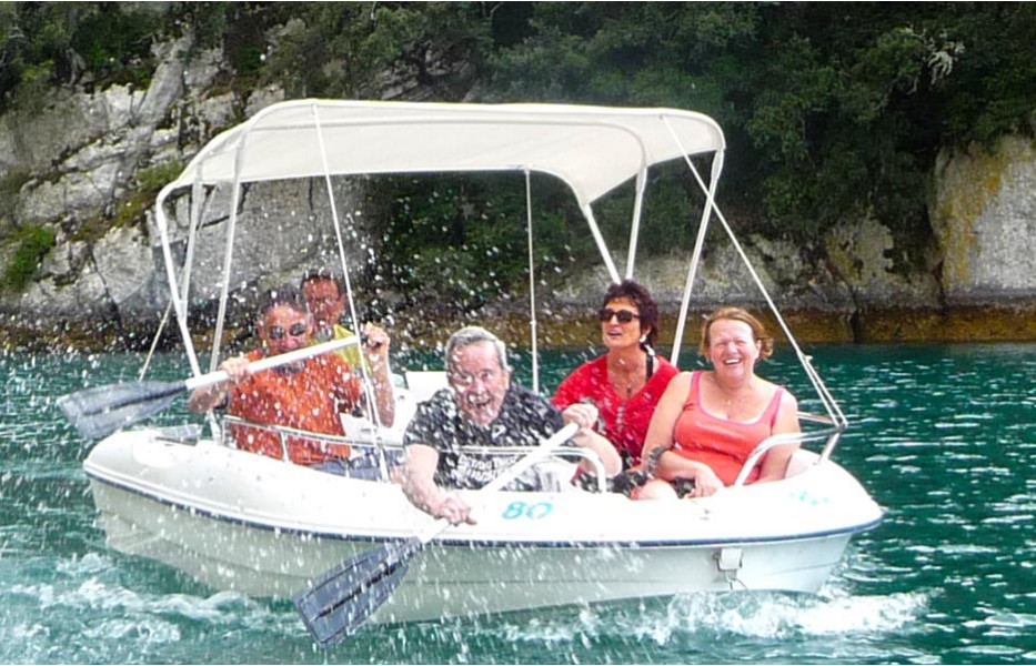 Il n’y a pas de plaisir parfait sans un grain de folie. Le lac Sainte-Croix est un site privilégié et épatant pour la baignade et les promenades en bateau, le pédalo, la pratique du kayak, et de la planche à voile, etc… En aval, de Sainte-Croix, le lac d'Esparron de Verdon (Aïe ! Aïe ! il se mérite celui-ci, si par hasard la mouche vous pique et qu’il vous prend d’y aller à vélo…) constitue une excellente retenue d’eau qui permit aux poly-dingues des G1 de l’UVO de faire avancer de pacifiques embarcations à propulsion électrique à la vitesse de hors-bords… à la rame, évidemment ! (voir diaporama) et ce n’est pas un sport de ramiers. Un excellent stage, donc ! Et — avis aux amateurs — il est fort probable qu'on remette ça l'an prochain. Voir