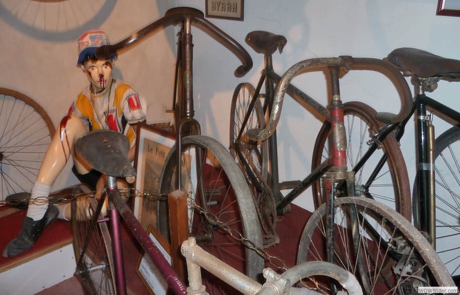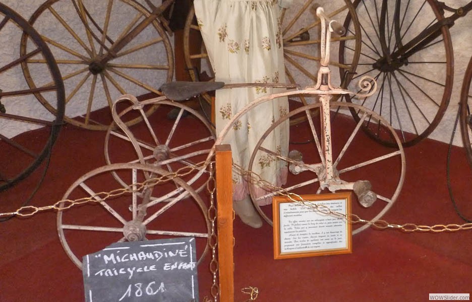 Inutile de surjouer l’intérêt que nous avons trouvé à visiter ce musée qui, selon son animateur et propriétaire, est l’un des musées du vélo les plus attrayants de France. Le diaporama parle assez fort. Et il en manque ! évidemment. Le musée est situé dans une cour de ferme appelée La Bourgade où sont installés, entre autres, un restaurant (sympa) et un doreur à la feuille. A voir : c’est une journée que nous n’avons pas regrettée. Bien au contraire.