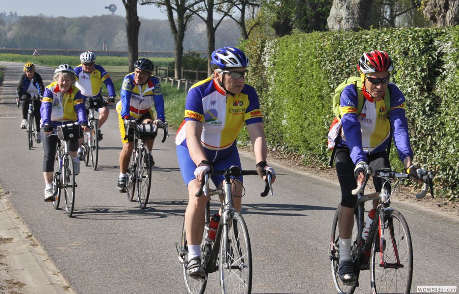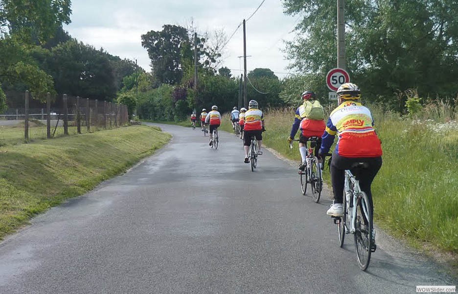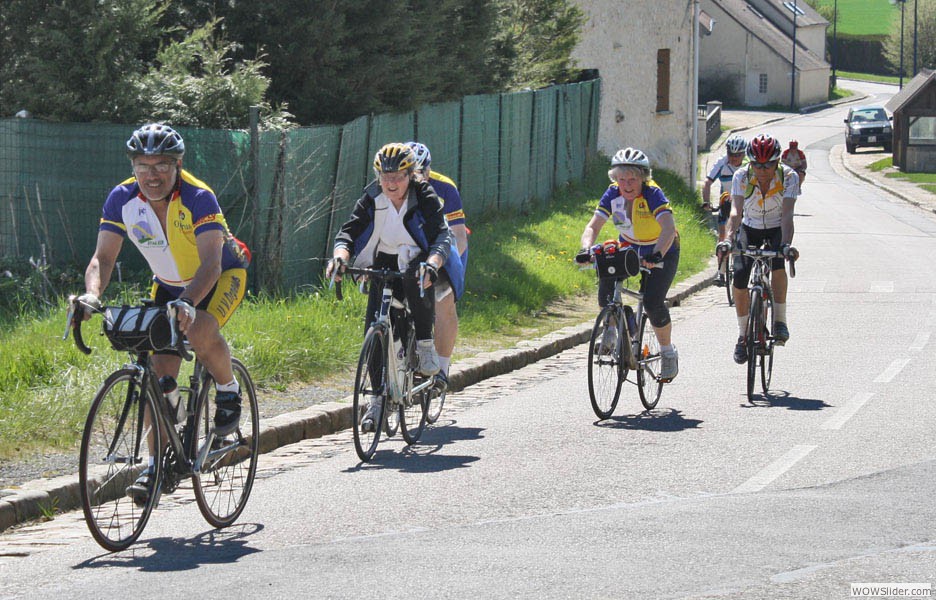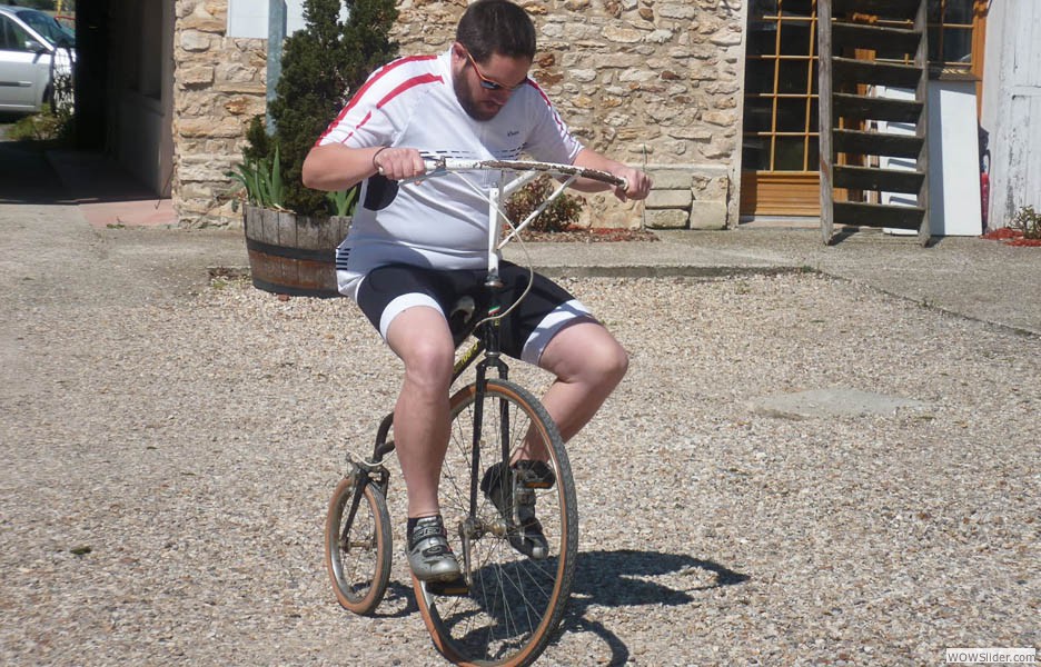 Sortie très sympa. Nous avons discuté du parcours avec Loïc pour aménager la partie Longnes-Favrieux et emprunter les routes de campagne qui nous vont si bien. Cerise sur le gâteau : nous ne pouvions espérer meilleure météo.Une balade dans la bonne humeur, quelques bosses pour se mettre en appétit... Le musée de Favrieux… A voir absolument par les amoureux du vélo. Les pièces exposées sont superbes, le guide (propriétaire du lieu) est un passionné passionnant. Dehors, d'anciennes pièces à deux roues sont à disposition des visiteurs pour s’essayer. Seul Loïc s'est risqué à l’exercice (périlleux sur certains modèles). Déjeuner à « La Voûte ». Le restaurant est à côté, dans la cour d’un ancien corps de ferme. Très belle salle en pierre (voûtée, comme son nom l’indique). Bon accueil, bonne cuisine […] Retour sous le soleil, un peu plus difficile que l'aller — chaleur, restau, kilométrage ? — mais sans problème. Chacun est rentré très satisfait de cette première. Le concept, outre l'objectif touristique, permet une sortie ouverte à tous. Pour cette inauguration, les groupes Promenade, G4 et G3 étaient représentés. Sympa non ?