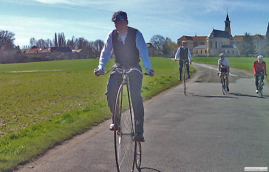 France : 3) Cocoriiicooo ! fabrique des jantes et des fourches creuses à partir d'un stock déclassé de fourreaux de sabre… et invente le rayon métallique en tension. Balèse. (Allemagne : 1, France : 4). Cocoriiicooo! La course au poids commençait. La course à l’armement aussi. On a vu des roues de 3 mètres de diamètre. Au rabe de chutes !