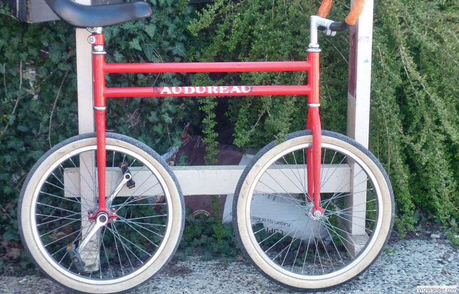 La bicyclette telle que nous la connaissons, ses roues de diamètres égaux et sa traction par chaîne, apparut vers 1880. Là, on n’sait pas qui est l’inventeur. (Cocoriiicooo ! malgré tout !) il n’y a pas de raison que ce ne soit pas français. Le premier cadre « actuel »